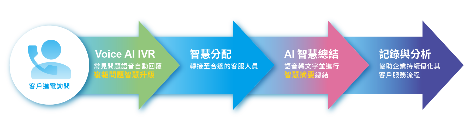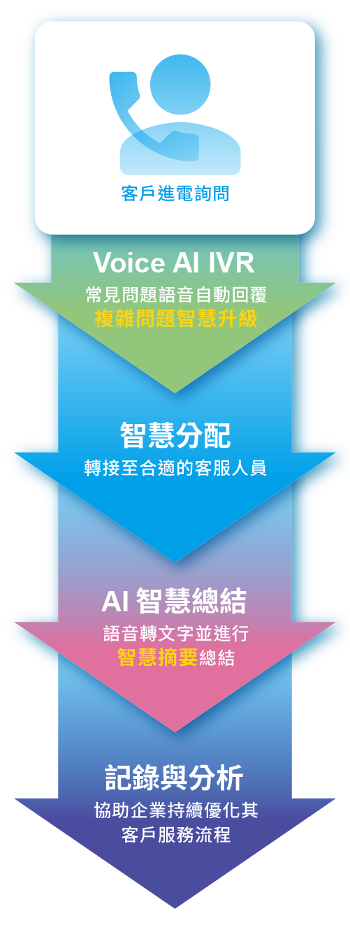 導入 Voice AI 功能後不僅能處理簡單的常見問題,更能智慧分派複雜問題,並提供全面的數據分析。這些技術優勢為企業降低了運營成本、提升了服務效率,並極大地增強了客戶滿意度。